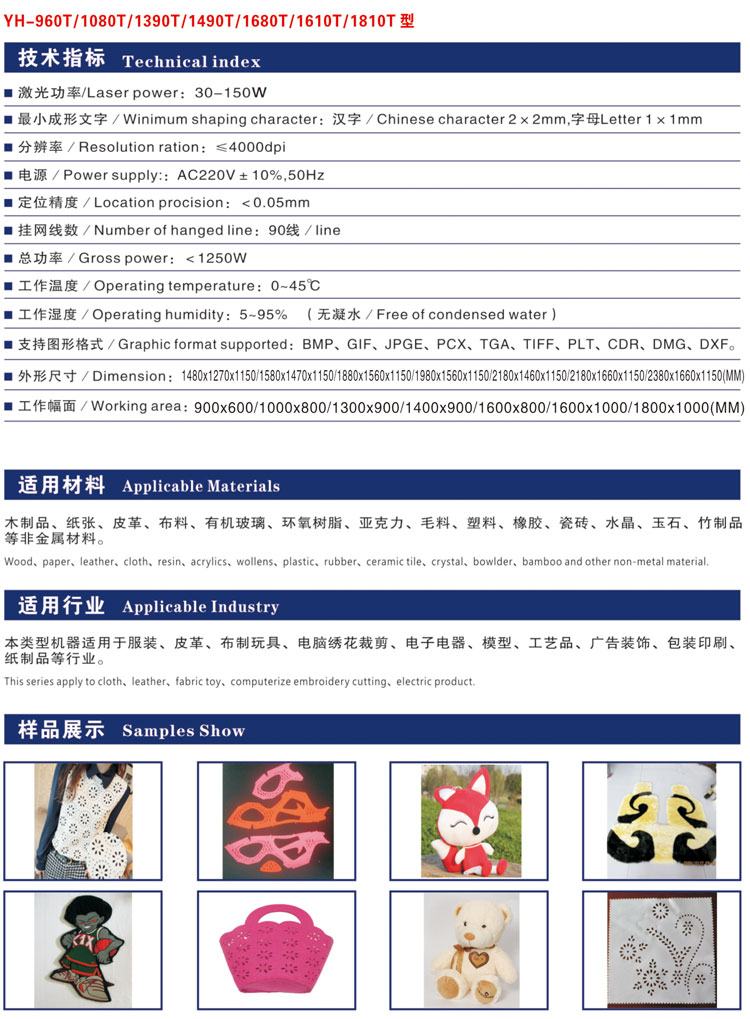 YH系列激光设备的开发目标是充分发挥运动控制性能并提升激光加工效果,不论从软件设计、机械构造、电气性能到配件选材,始终强调为加工现场服务的宗旨,在全面质量管理体系的工厂环境下进行生产作业,稳定性、精确度和速度三大指标均可体现世界一流设备水准。精益求精的YH系统产品,成为工业现场的新作业手段——激光加工的最好载体。