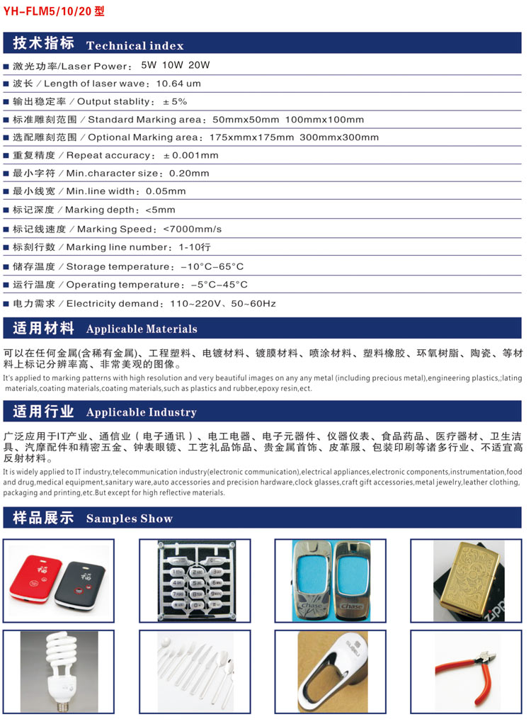 主要应用于对深度、光滑度、精细度要求高的领域,光斑模式理想,可达到光斑模式理论值的极限值。精度高,广泛应用于五金制品、工具备件、电子元器件、集成电路(IC)、电工电气、通讯器材、精密器械、首饰饰品、汽车配件、仪器仪表、塑胶按键、医疗器械等众多领域图形和文字的标记,以及大批量生产线作业。